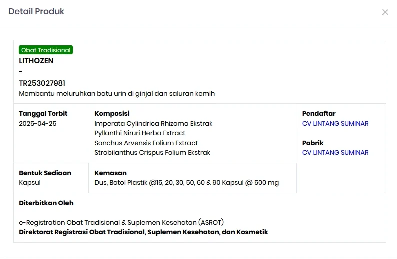 Obat herbal Lithozen membantu tubuh:
